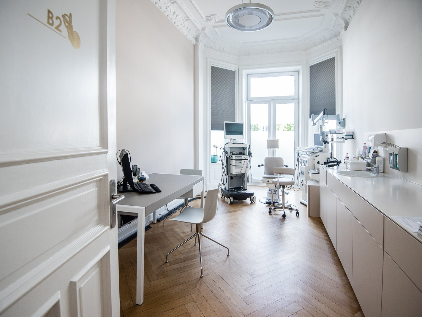 Die Praxisräume befinden sich im 1. Stock und der Altbau ist nicht barrierefrei.